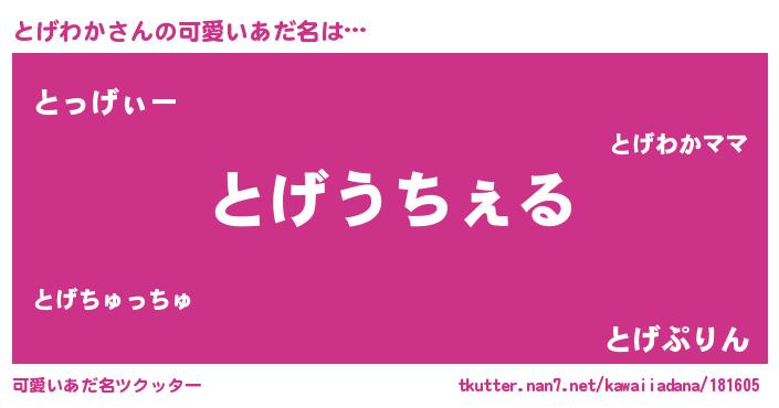 | ヘコむあだ名 | 『とげお』『とげわか(笑)』『つくし』 |