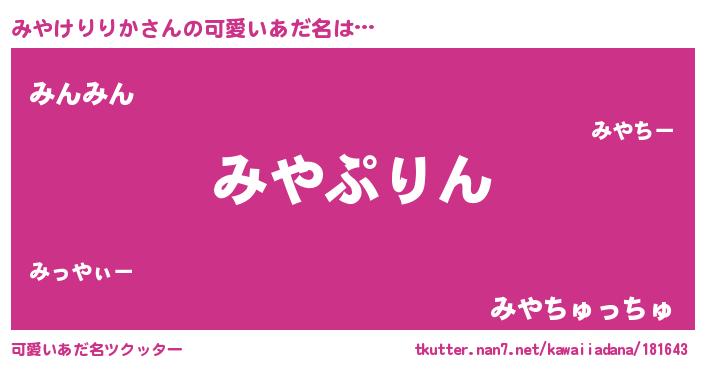 | 恥ずかしいあだ名 | 『プリティーみやけりりか』『みやっちょ』 |
