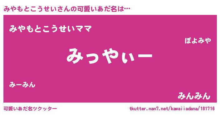 | ヘコむあだ名 | 『みやっ子』『みやもとこうせい(苦笑)』 |