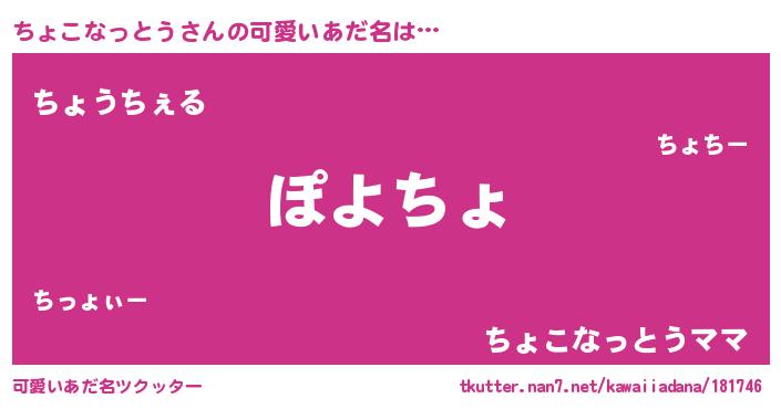 | ヘコむあだ名 | 『ちょこなっとう(震え声)』『豆乳』 |