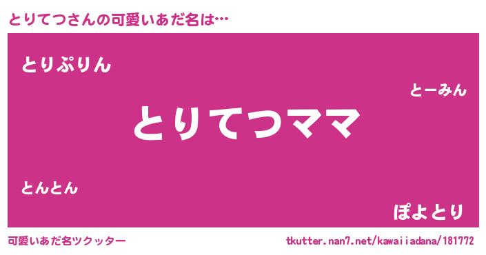 | 恥ずかしいあだ名 | 『とりちん』『プリティーとりてつ』 |