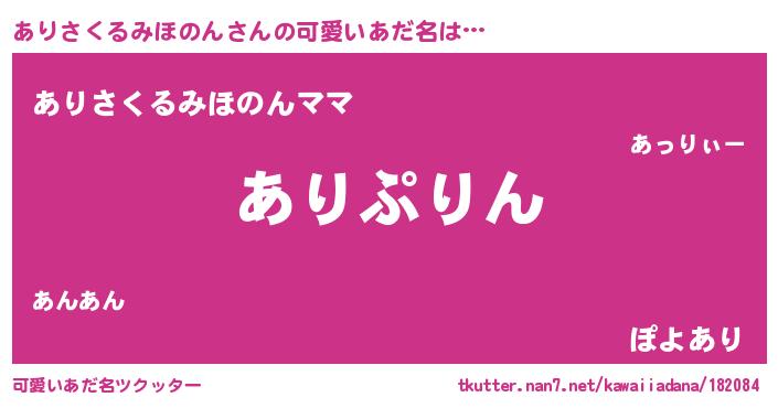 | ヘコむあだ名 | 『ありさくるみほのん(遠い目)』『ありっぺ』 |