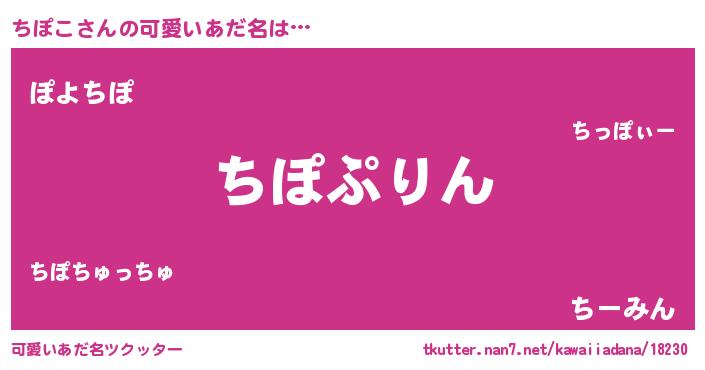 | 男性向けラノベタイトル風あだ名 | 『ちぽこ~年齢イコール彼女いない歴の魔法使い~』 |