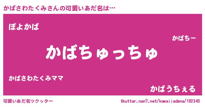 | ヘコむあだ名 | 『酢こんぶ』『かばさわたくみ(笑)』 |