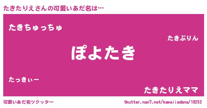 | ヘコむあだ名 | 『たきたりえ(遠い目)』『たきっ子』 |