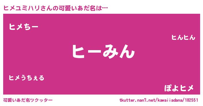 | 意味不明あだ名 | 『ヒメユミハリフォーエバー』 |