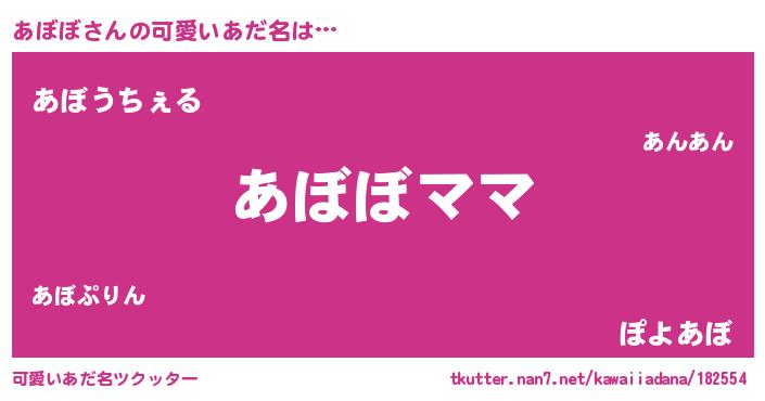 | 男性向けラノベタイトル風あだ名 | 『あぼぼという概念が存在しない退屈な世界 』 |