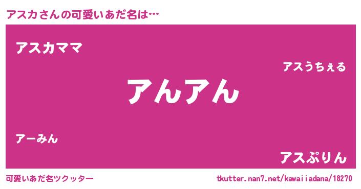 | 意味不明あだ名 | 『ペロリンアスカ』『永久保存アスカ』 |