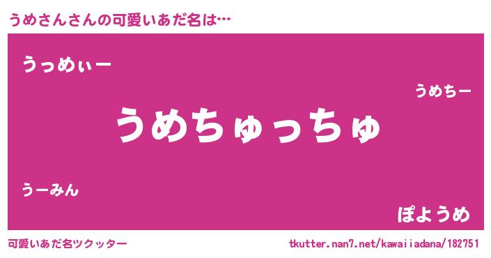 | ヒーロー風カッコイイあだ名 | 『友情の使者うめさん』『暗黒騎士ウメ』 |