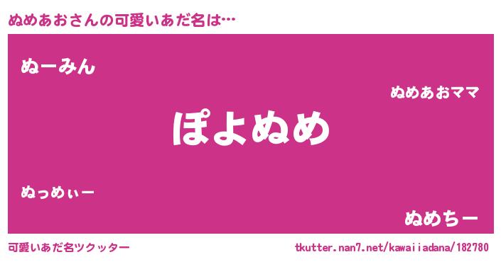 | 男性向けラノベタイトル風あだ名 | 『この素晴らしい世界にぬめあおを!』 |