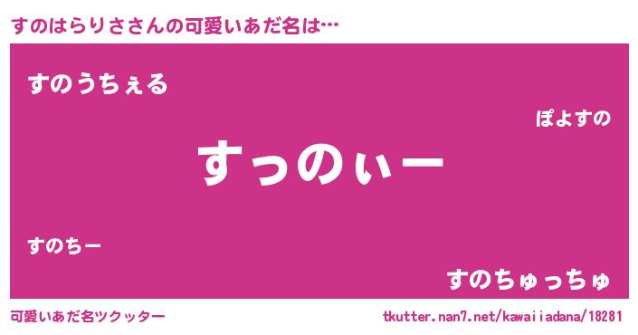 | 男性向けラノベタイトル風あだ名 | 『すのはらりさの嫁は女の子じゃないと思った?』 |