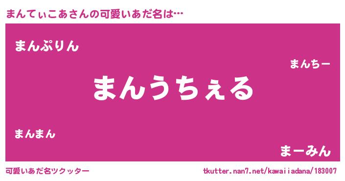 | 男性向けラノベタイトル風あだ名 | 『Re:まんてぃこあから始める異世界生活』 |