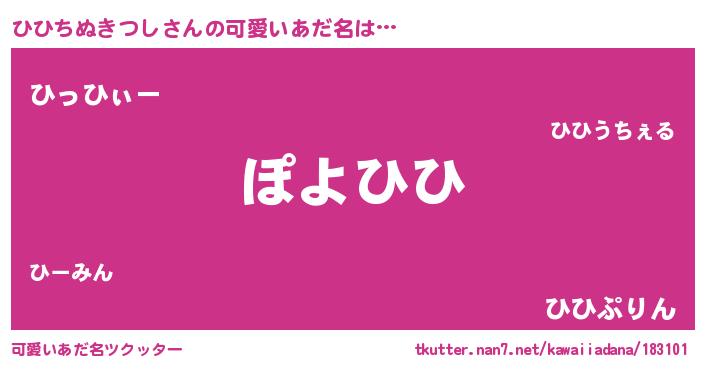 | 男性向けラノベタイトル風あだ名 | 『この素晴らしい世界にひひちぬきつしを!』 |