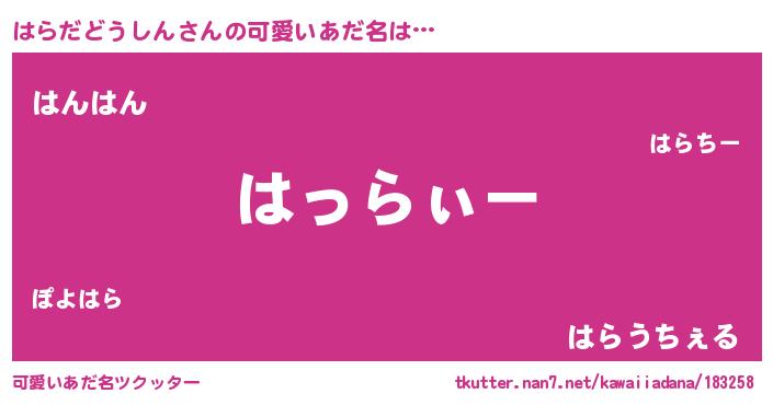 | 恥ずかしいあだ名 | 『ハラリンリン』『はらっちょ』 |