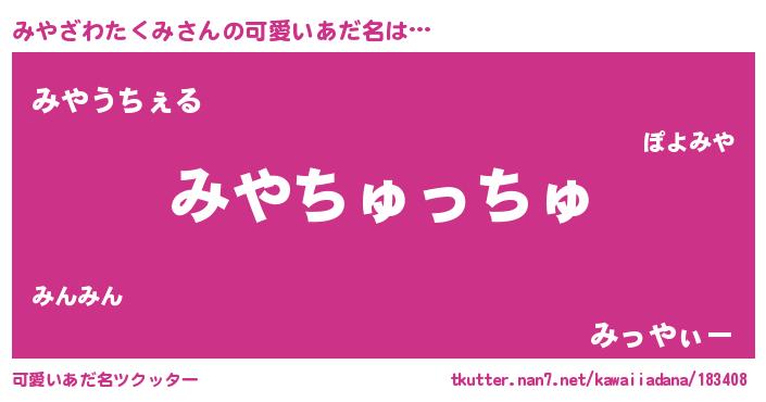 | ヘコむあだ名 | 『みやぷりん』『みやもー』 |