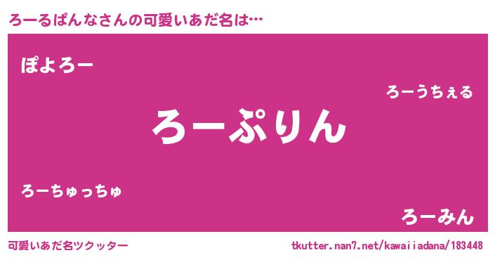 | 女子向けラノベタイトル風あだ名 | 『ろーるぱんなの玉の輿計画!』 |