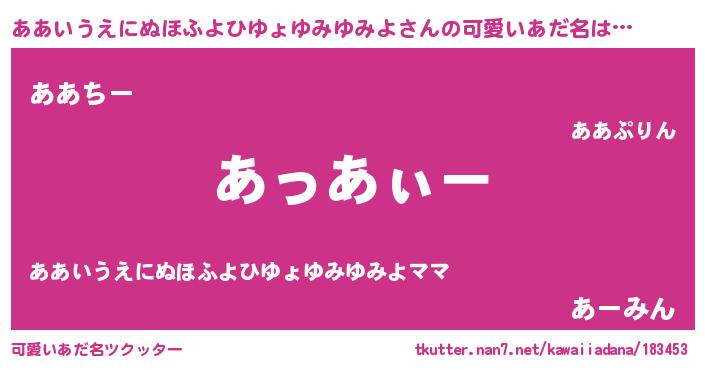| ポケモン風あだ名 | 『ヒアアイウエニヌホフヨヒユョユミユミヨ』 |