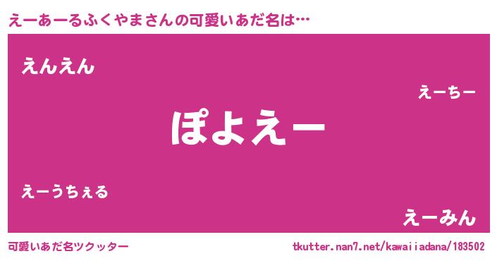 | 恥ずかしいあだ名 | 『プリティーえーあーるふくやま』 |