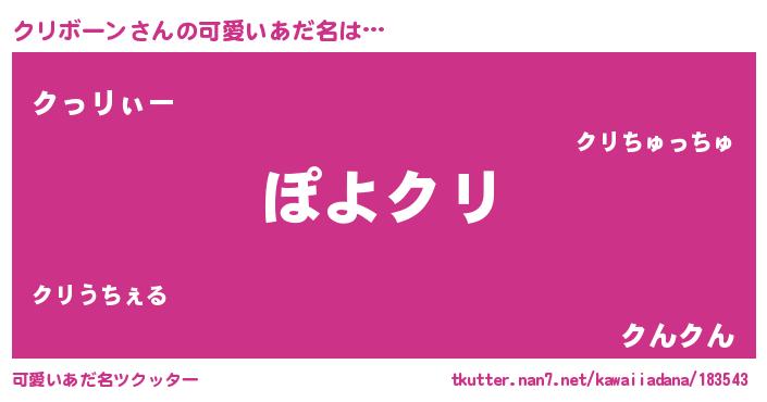 ヘコむあだ名 | 『クリっぺ』『クリもー』『酢こんぶ』 |