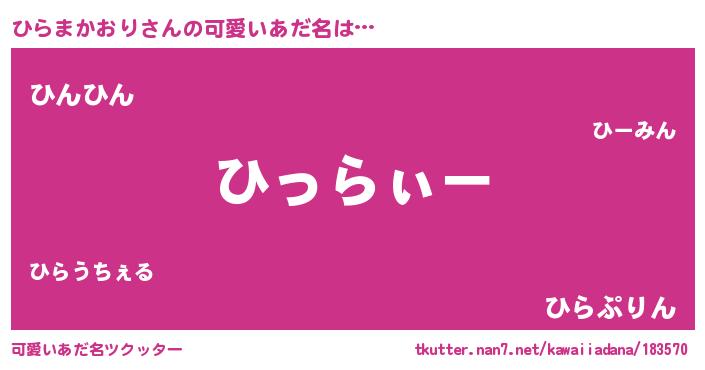 | 男性向けラノベタイトル風あだ名 | 『ひらまかおりの嫁は女の子じゃないと思った?』 |