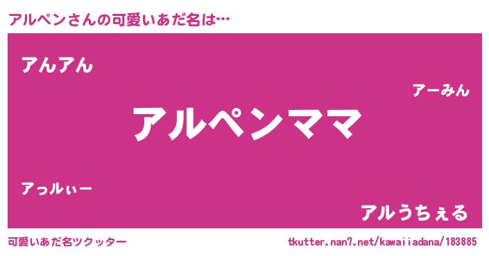 | 意味不明あだ名 | 『永久保存アルペン』『ペロリンアルペン』 |