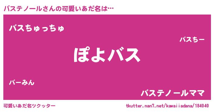 | 男性向けラノベタイトル風あだ名 | 『この素晴らしい世界にバステノールを!』 |