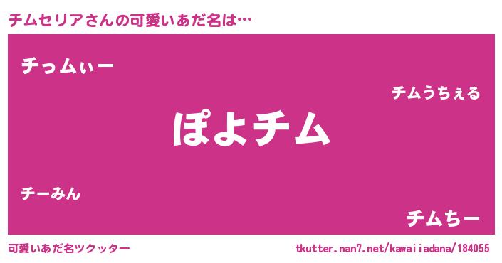 | 男性向けラノベタイトル風あだ名 | 『この素晴らしい世界にチムセリアを!』 |