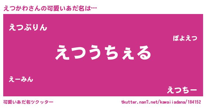 | 意味不明あだ名 | 『自称えつかわ』『めかぶ科えつかわ属』 |
