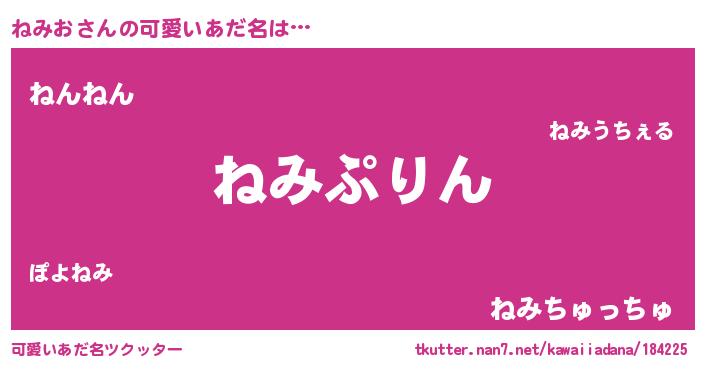| 女子向けラノベタイトル風あだ名 | 『ねみおの玉の輿計画!』『闇のねみお』 |