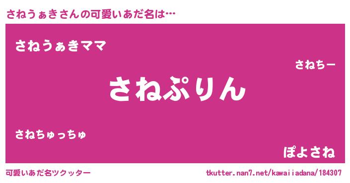 | 男性向けラノベタイトル風あだ名 | 『転生したらさねうぁきだった件』 |