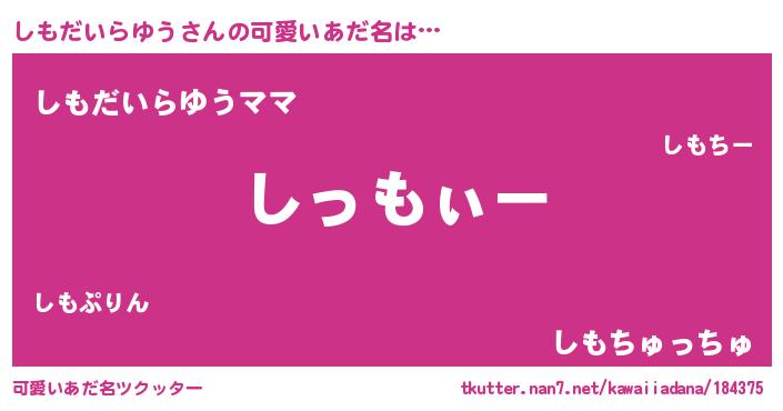| 意味不明あだ名 | 『とにかく怪しいしもだいらゆう』 |