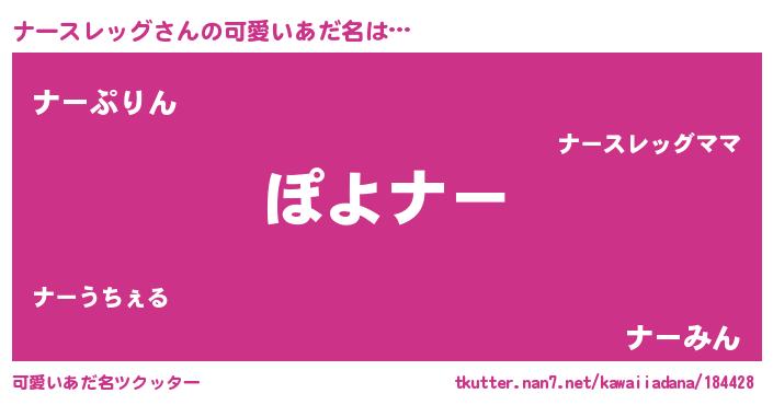 | ヒーロー風カッコイイあだ名 | 『仮面ナーダー』『ネオナースレッグ』 |