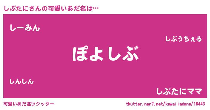 | 意味不明あだ名 | 『住所不定無職しぶたに(13歳)』 |