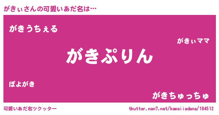 | 意味不明あだ名 | 『たけのこ科がきぃ属』『自称がきぃ』 |