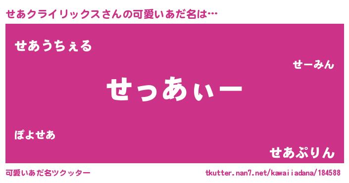 | ヘコむあだ名 | 『せあ太郎』『せあクライリックス(小並感)』 |
