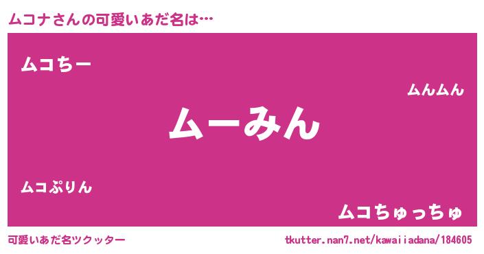 | 意味不明あだ名 | 『ムコナフォーエバー』『ペロリンムコナ』 |