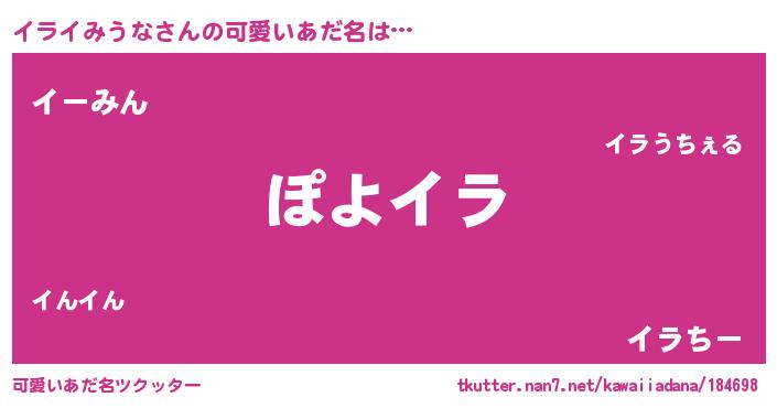 | 恥ずかしいあだ名 | 『イラっちょ』『イライミウナデラックス』 |