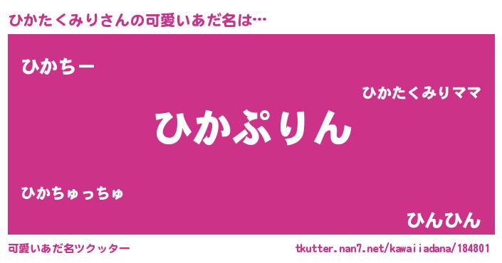 | 男性向けラノベタイトル風あだ名 | 『ひかたくみり~年齢イコール彼女いない歴の魔法使い~』 |