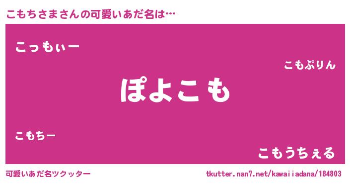 | 男性向けラノベタイトル風あだ名 | 『この素晴らしい世界にこもちさまを!』 |