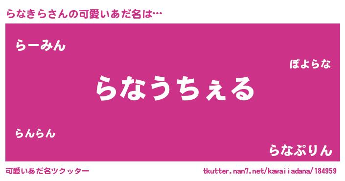 | ヘコむあだ名 | 『らなにゅー』『豆乳』『らなお』 |