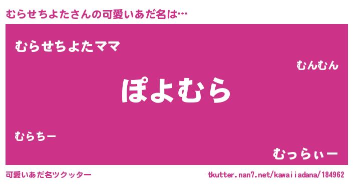 | ヘコむあだ名 | 『むらせちよた(笑)』『むらを』 |