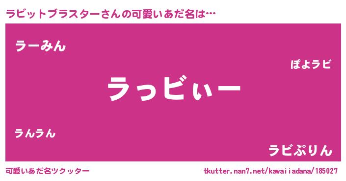 | 男性向けラノベタイトル風あだ名 | 『ラビットブラスターの嫁は女の子じゃないと思った?』 |