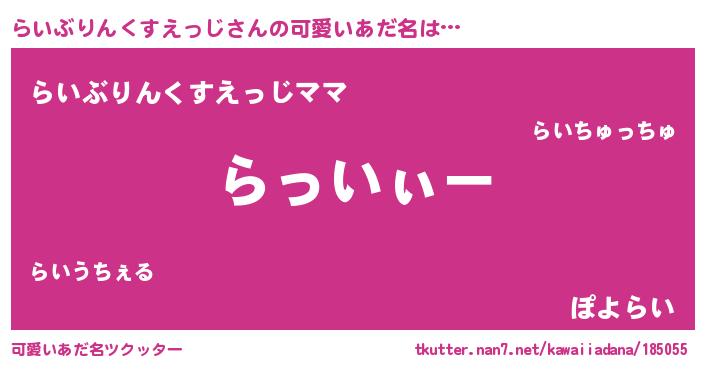 | ヘコむあだ名 | 『らいを』『らいぶりんくすえっじ(遠い目)』 |