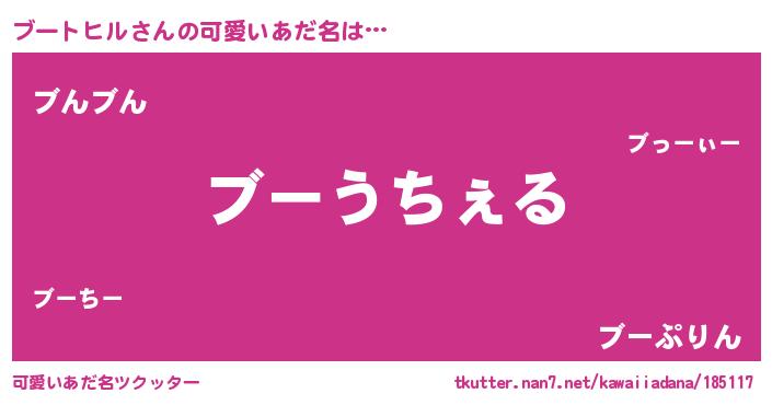| 女子向けラノベタイトル風あだ名 | 『ブートヒルなんてお断りですっ。』 |