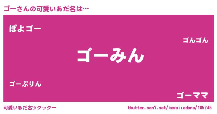| 意味不明あだ名 | 『住所不定無職ゴー(8歳)』『永久保存ゴー』 |