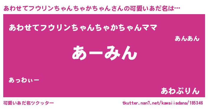 | 胡散臭い通販商品みたいなあだ名 | 『絶対に幸福をもたらす水素水…その名も「あわせてフウリンちゃんちゃかちゃん」』 |