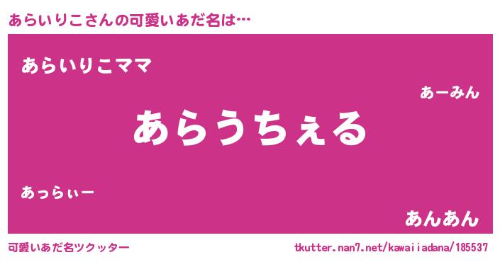 | ヘコむあだ名 | 『あらいりこ(震え声)』『あらにゅー』 |