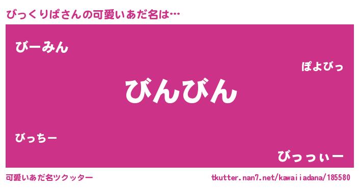 | 男性向けラノベタイトル風あだ名 | 『びっくりばの憂鬱』 |