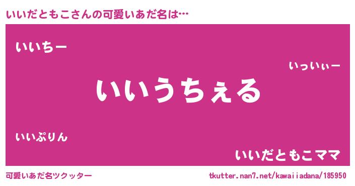 | 男性向けラノベタイトル風あだ名 | 『Re:いいだともこから始める異世界生活』 |