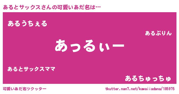 | 男性向けラノベタイトル風あだ名 | 『あるとサックスの嫁は女の子じゃないと思った?』 |